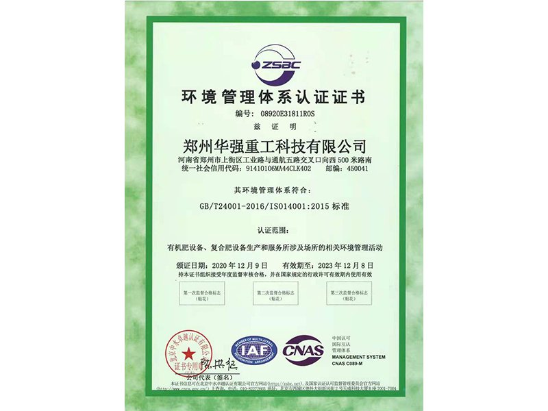 環(huán)境管理體系認證證書